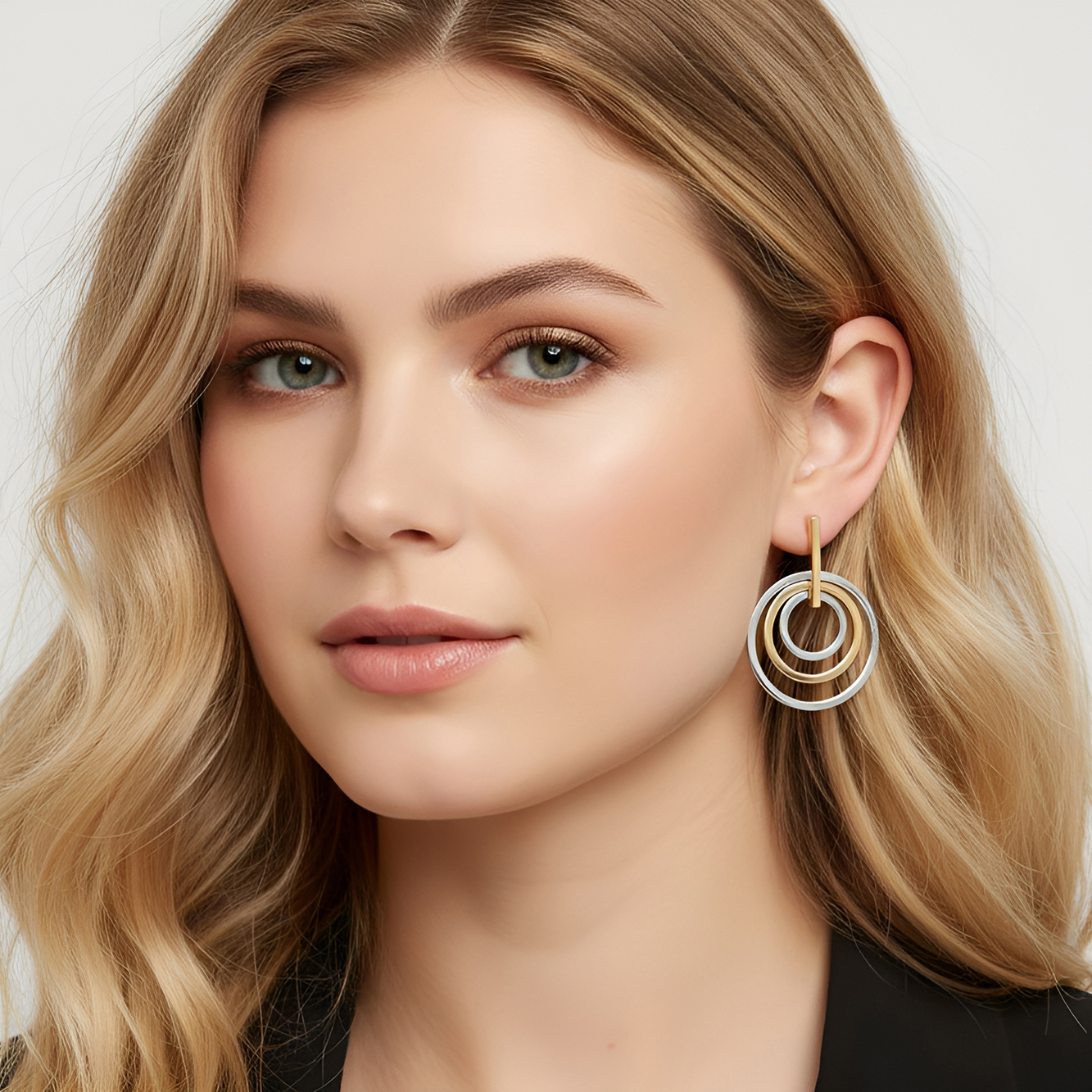 ear-1335-g Multi Circle Earrings width: 1.25 inches length: 1.5 inches 18k yellow gold and rhodium plated $115.00 Add to cart