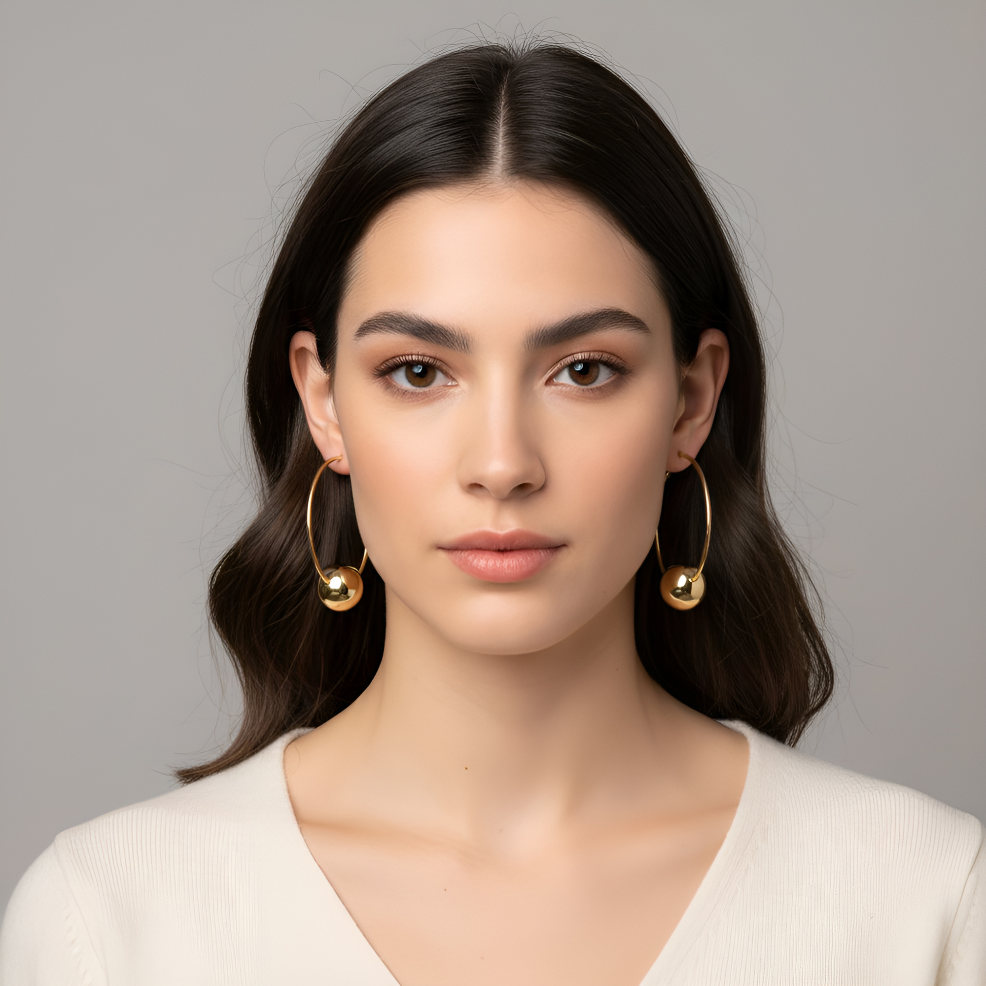 ear-1453-g Oprah’s Favorite Medium ball hoop earrings 1 3/4 inch diameter 18k yellow gold plated $115.00 Add to cart