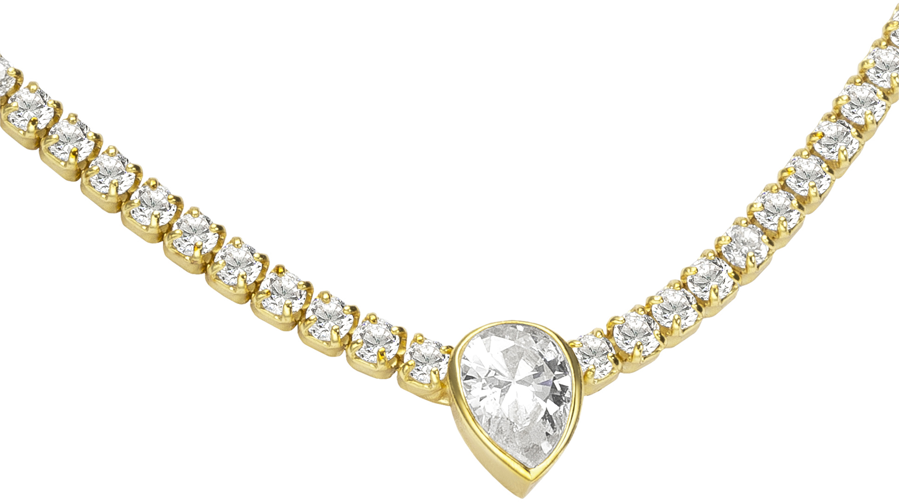nk-1113-g bezel set pear shaped c.z. crystal necklace adjustable chain: 15.75-18 inches 18k yellow gold plated brass $290.00 Add to cart