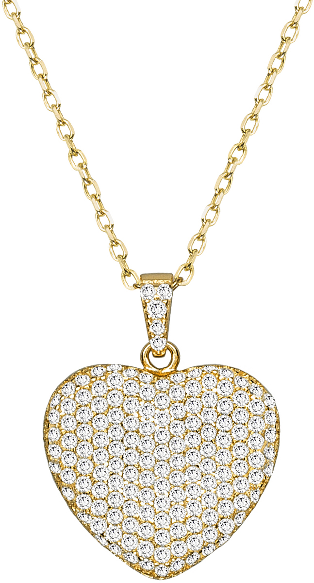 nk-1123-g pavé crystal heart necklace adjustable chain: 16-18 inches crystal heart width: 0.625 inches sterling silver 18k yellow gold plated $115.00 Add to cart