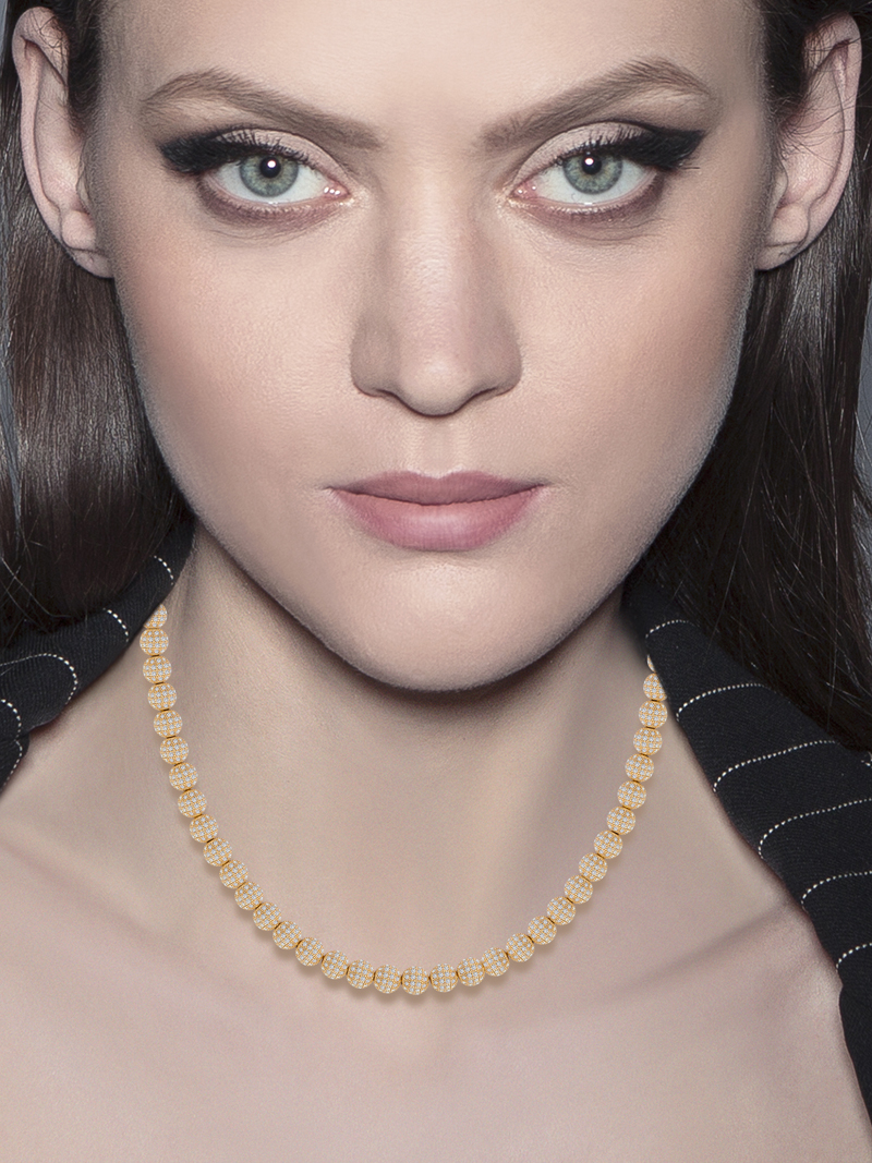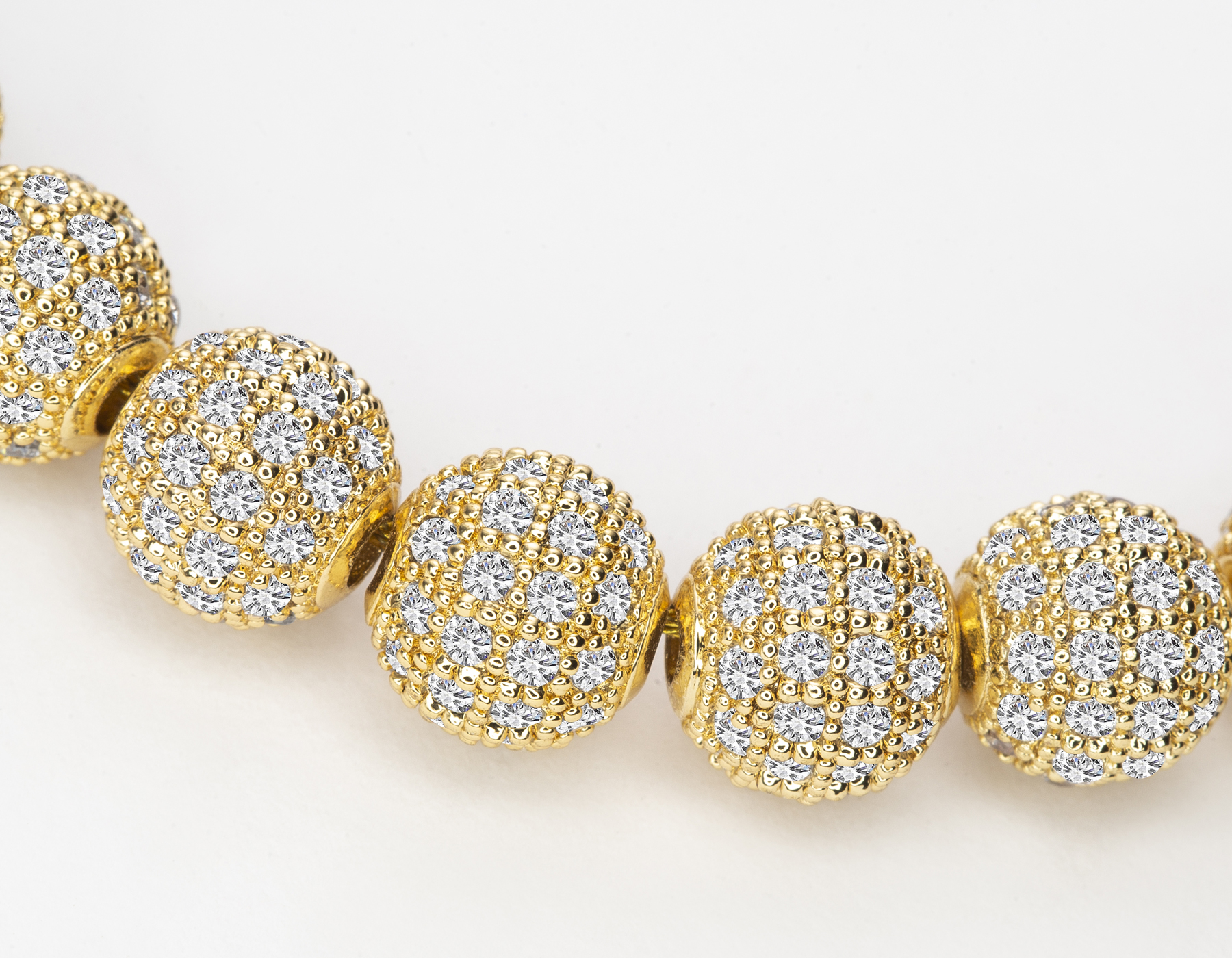 nk-1210-g pave CZ bead necklace chain length: 17 inches 8 mm beads c.z. crystal 18k gold plated brass $340.00 Add to cart
