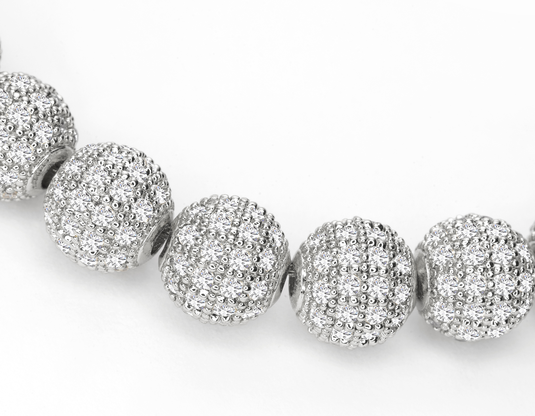 nk-1210-r pave CZ bead necklace chain length: 17 inches 8 mm beads c.z. crystal rhodium plated brass $340.00 Add to cart