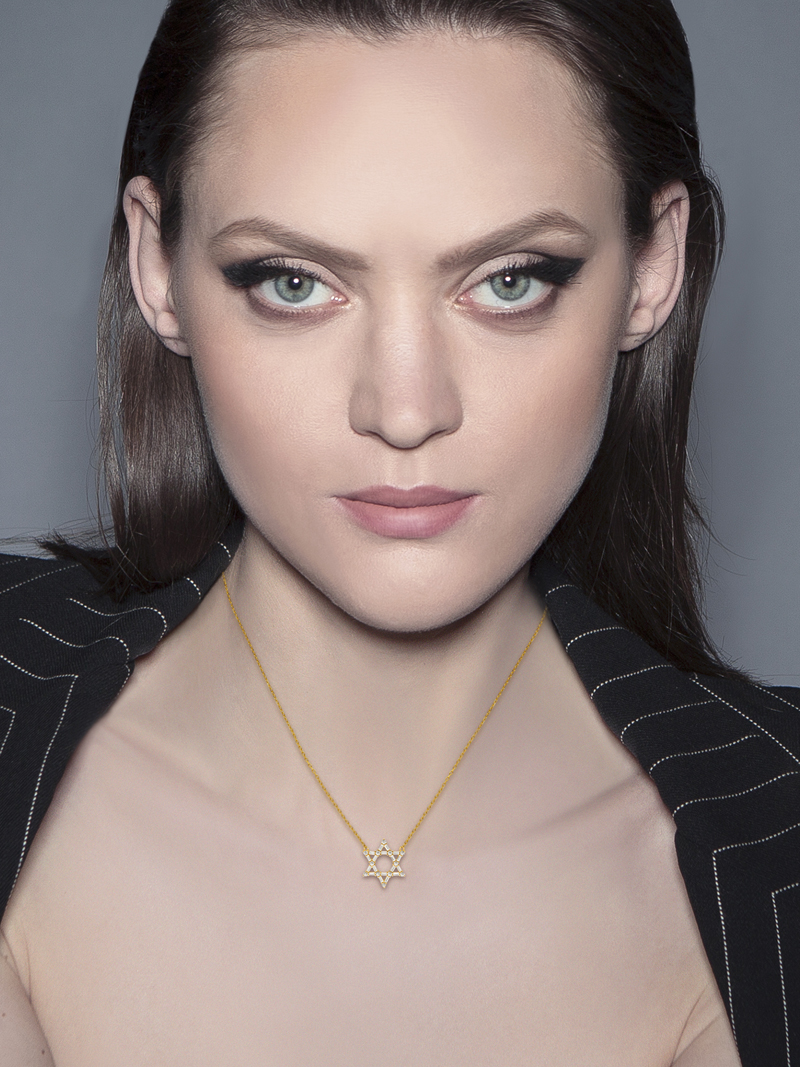 nk-1216-g Jewish Star Necklace adjustable length: 16-18 inches star diameter: 0.75 inches sterling silver 18k gold plated Cz crystal $150.00 Add to cart