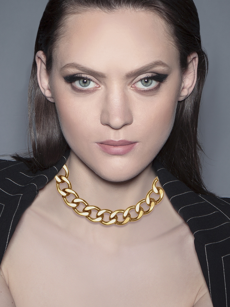 nk-1274-g chain link necklace 0.75 x 15.5 inches extender: 2 inches 18k yellow gold plated brass $190.00 Add to cart