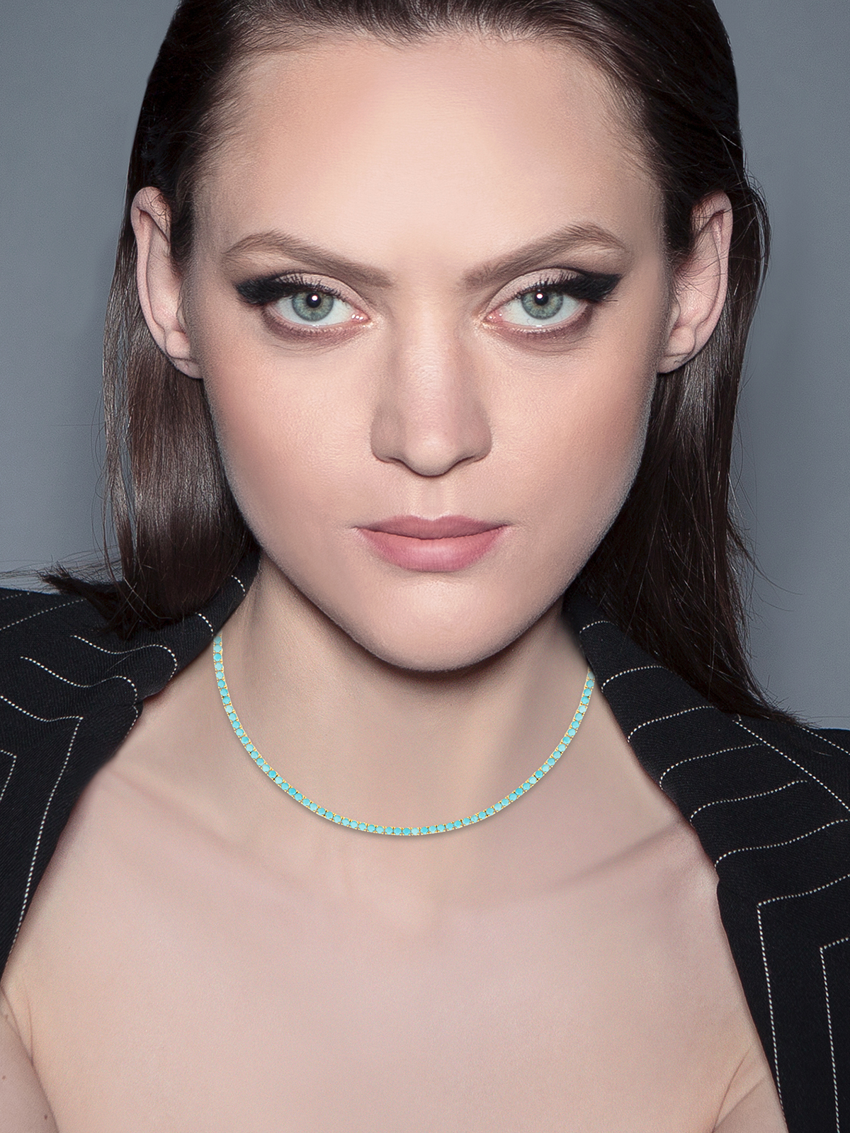 Turquoise CZ tennis necklace