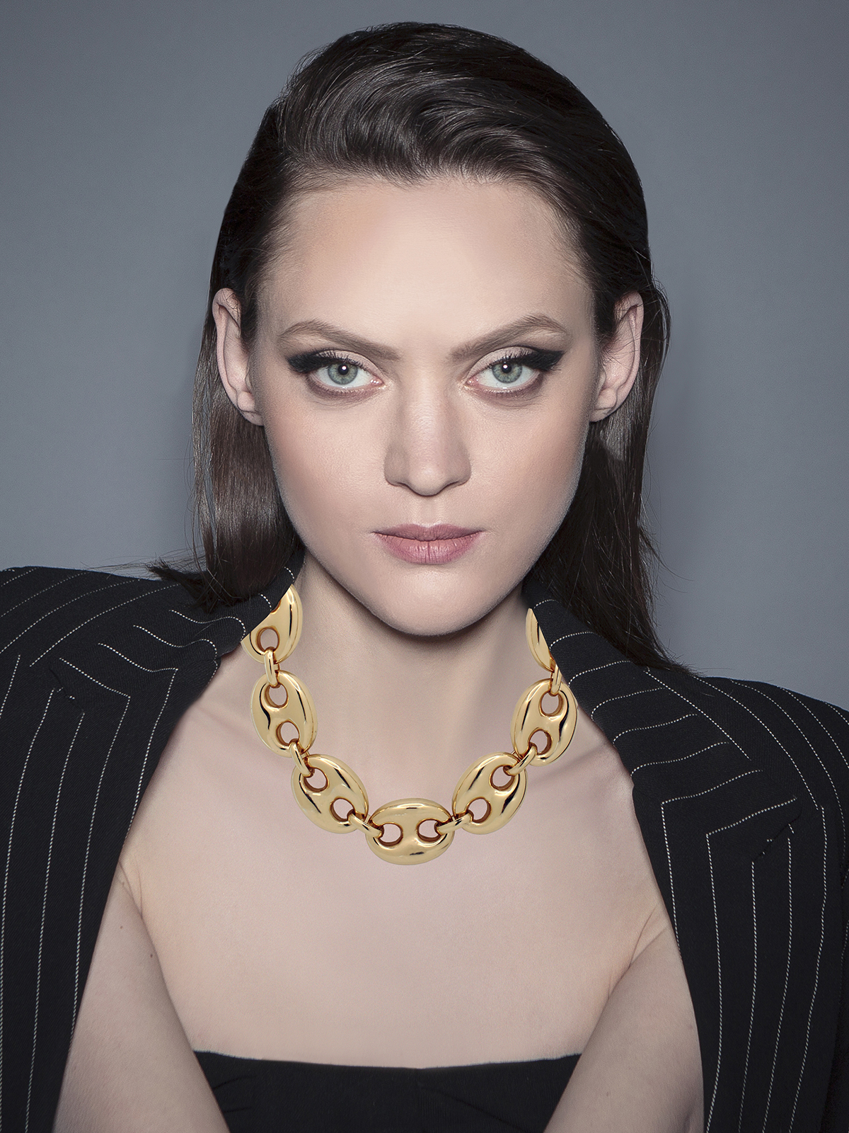 nk-1345-g Gold oval link necklace 20 inches long links measure 1 inch x 1.5 inches 18k yellow gold plated brass $200.00 Add to cart