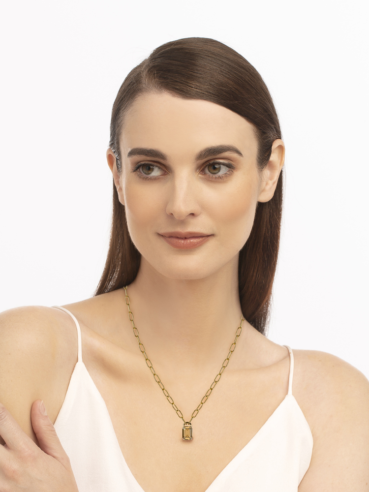 nk-966-gs Golden Shadow Crystal Necklace chain length: 17.5 inches crystal: 0.25 x 0.5 inches high polished gold plated brass $225.00 Add to cart