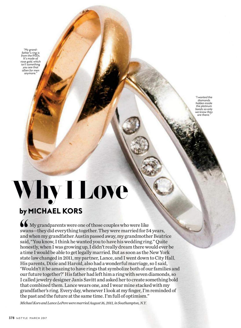 InStyle magazine feature on Janis Savitt wedding rings for Michael Kors